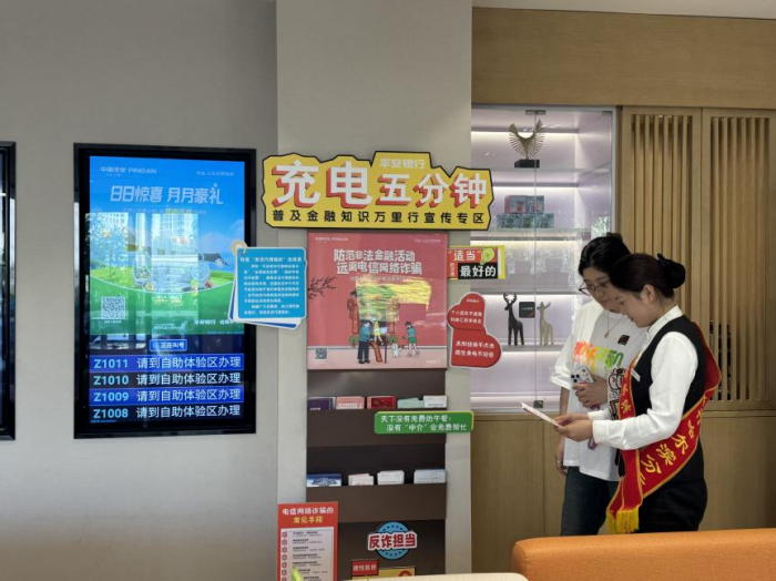 平安银行哈尔滨群力支行考虑到该支行老年客户较多且进店取号的特点,巧妙地将“专区”设置在叫号机旁。进店办理业务的客户注意力容易被吸引,进而主动走近“专区”学习实用的金融知识。工作人员抓住这一契机,结合真实案例,通过趣味互动的方式传递实用技巧,为市民带来了一堂堂别开生面的金融安全课。