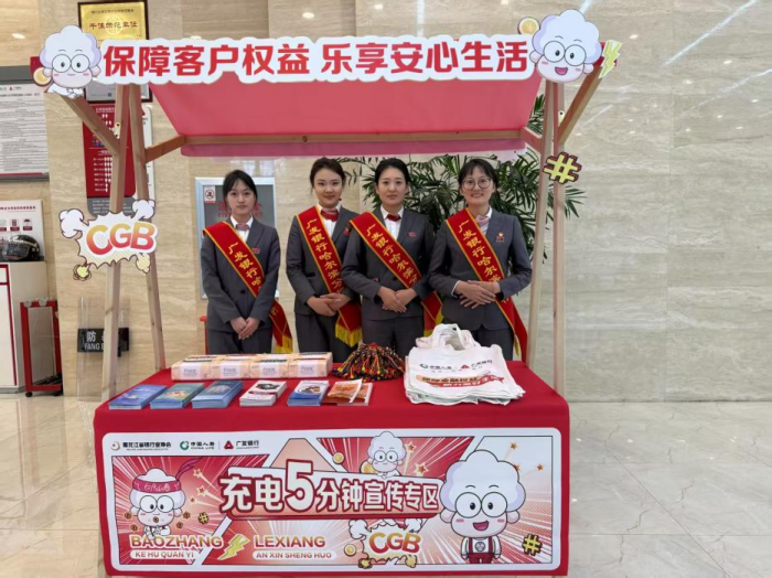 同时,邀请客户参与互动问答,并为参与答题的客户准备了帆布袋、反诈纸抽、平安结等精美礼品。“充电5分钟”宣传专区布展完成后,凭借其吸睛的卡通形象和温馨的布置,深受来访客户的喜爱,取得了显著的宣传效果。
