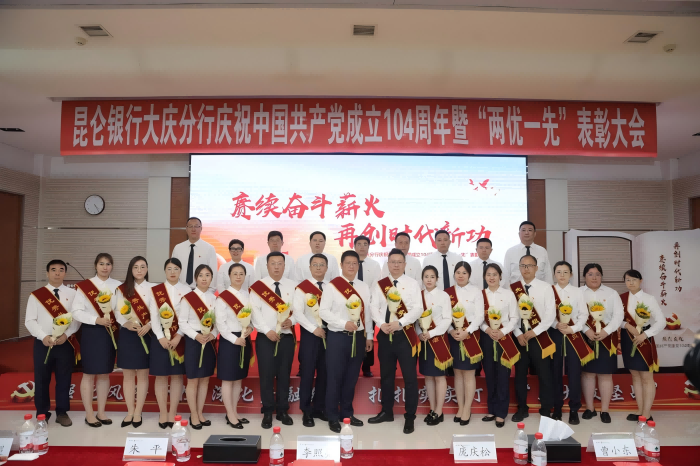 昆仑银行大庆分行召开庆祝中国共产党成立104周年暨“两优一先”表彰大会